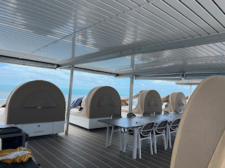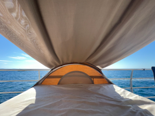 Jeden pár, který byl na svatební cestě, měl “Reefsuite”, takže spal v podpalubí v prosklené kajutě.