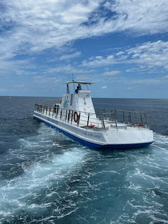 se společností CRUISE WITHSUNDAYS z Port of Airlie Beach, abychom se zastavili na ostrově Hamilton (tam se dá doletět přímo letadlem a člověk si ušetří cestu lodí z Airlie Beach) pro zbytek turistů a následně po zhruba 3 hodinách jsme dorazili ke korálovému útesu, kde je natrvalo nainstalován ponton (vlastně dva, jeden je pro turisty, druhý je pro posádku). Kromě pontonu je tam také polo-ponorka (taková malá mořská observatoř) a přistávací plocha pro vrtulník.