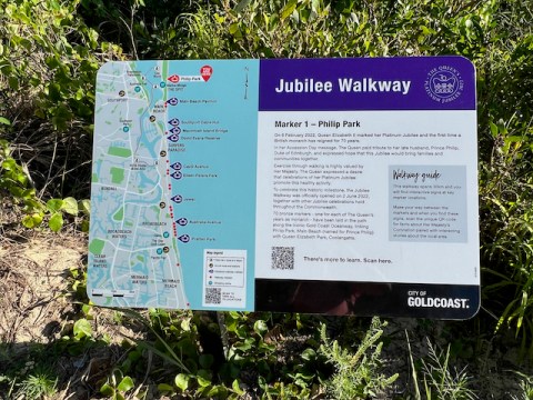 70 bronzových značek – jedna pro každý rok královny jako královny – je na cestě dlouhé 30 km podél ikonické Gold Coast Oceanway. Tyto značky spojují Philip Park, Main Beach (pojmenovaný po Princi Philipovi) s Queen Elizabeth Park, Coolangatta.
