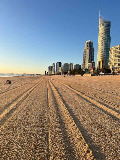 Surfers Paradise fotím dost často, protože jsem na tomto místě vlastně denně. Tady jsou fotky aktuálně z tohoto výletu. Zaujal mne traktor, který upravoval pláž. Tohle jsou momenty, které člověk zachytí, jen když vstane opravdu brzy 😇. Přišlo mi to jako úprava sjezdovek na horách 🤣.