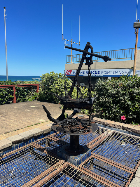 Tady je konec trasy a zároveň Lifegard č.1 – je to číslované obráceně než trasa Jubilee Walkway. Netuším, jaký to má důvod, možná vůbec žádný. Došla jsem až k modernímu majáku v Coolangattě, kde končí Queensland a začíná Nový Jižní Wales (město Tweed Heads). Tam se ale určitě vypravím jindy, protože i tak to byl dlouhý výlet. Zpátky “domů” na Gold Coast jsem jela autobusem ještě asi 1,5 hod.