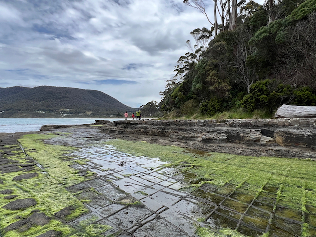 Dlaždicový chodník v Eaglehawk Neck v Tasmánii vznikl tak, že skalní povrch byl rozdělen puklinami, čímž vznikl soubor pravoúhlých bloků, které rozhodně nevypadají jako přírodní jev.