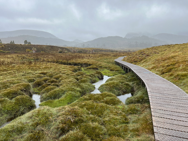 Ranní příjezd do Cradle Mountain NP z Promised Lanad (Promised Land – AAA Granary Accommodation). K přesunům v Cradle NP lze používat jen jejich místní shuttle autobusy (jezdí každých 15 minut až do 16:30 hod), které jsou na základě zaplaceného vstupného do národního parku pak už zdarma. Silnice v národním parku jsou totiž velmi úzké a rozhodně nejsou připraveny na velký provoz, zároveň tím šetří národní park.