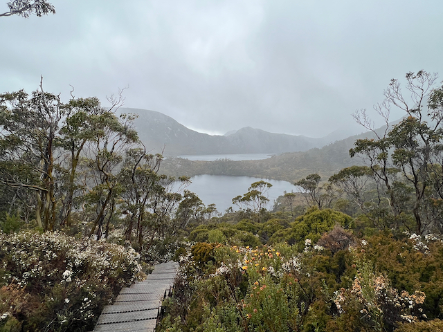 Šla jsem tedy trasu kolem jezer Crater Lake, Wombat Poo, Lake Lilla a Dove Lake (3 hod) přes všechny možné kopce a byla to fascinující podívaná. Neumím si představit, jak krásné by to bylo, kdyby by k tomu celou dobu svítilo sluníčko, na pár minut se mi sice ukázalo, ale to byly jen takové záchvěvy.