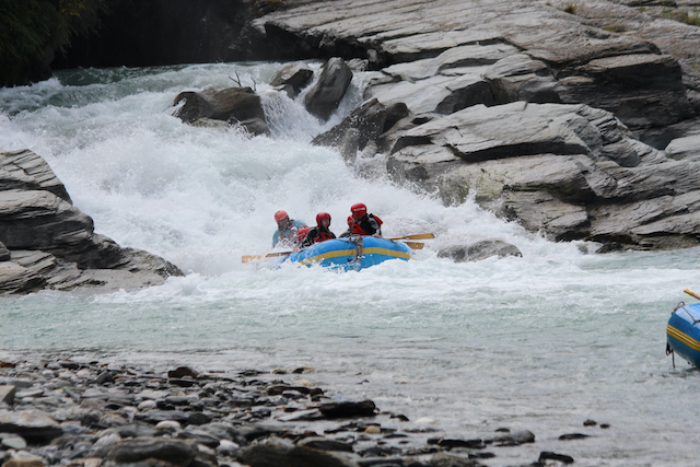 Projeli jsme peřeje divoké řeky Shotover stupně 3–5 v jednom z nejmalebnějších prostředí na světě. Peřeje se mění každým okamžikem, byli jsem ale ujištěni našimi průvodci, že jsme v dobrých rukou a ale zároveň, že mají velký smysl pro dobrodružství. Opravdu nás provedli kaňony a pomohli nám, co dělat v peřejích, abychom si to užili. Na závěr jsem projeli slavným 170m dlouhým tunelem Oxenbridge (uměle vytvořený během novozélandské horečky). Jedná se o jeden ze dvou tunelů na světě, kterými se jezdí na raftech.
