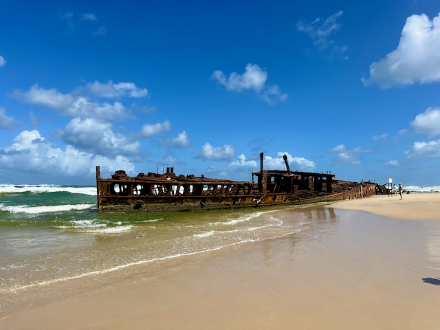 Pak jsme se zastavili u symbolu ostrova Fraser vrak lodi Maheno.