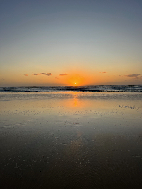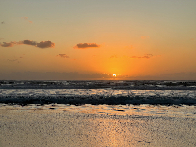 V sobotu 11.2.2023 bylo opravdu téměr jasno, takže východ slunce na pláži byl úžasný.