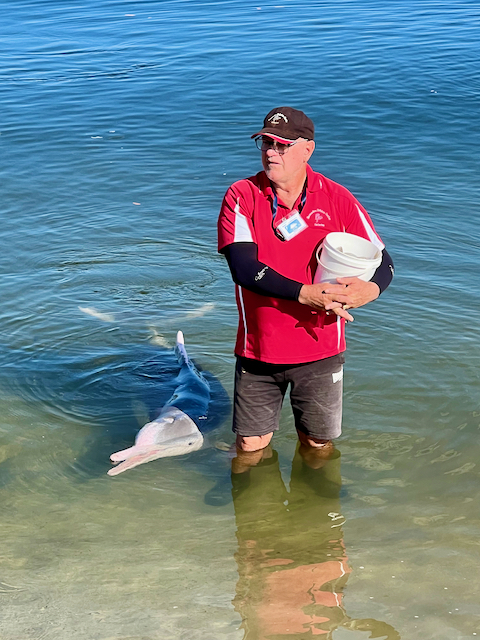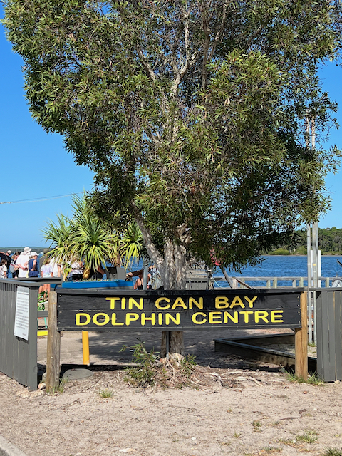 Krmení delfínů je v Tin Can Bay velmi organizované, tak už mi to ani nepřišlo jako krmení “divokých” delfínů. Tito delfíni jsou zvyklí, že každé ráno zde dostanou nějakou dobrou rybičku od různých lidí. Místní kavárna si z toho udělala business, proč ne. Nutno ale podotknout, že všichni lidé, kteří pomáhají s organizací jsou dobrovolníci, takže jde jen o to nachytat ryby pro krmení.